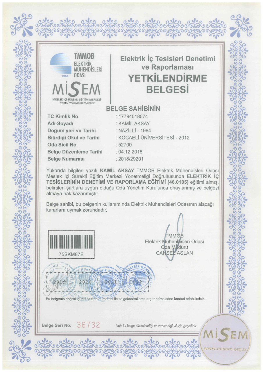 Elektrik İç Tesisleri Denetimi Yetkisi