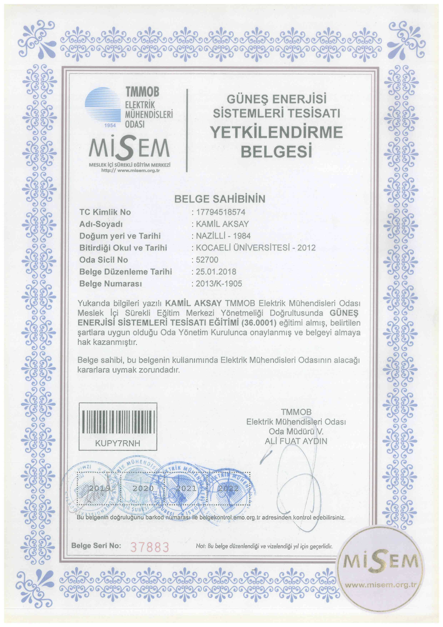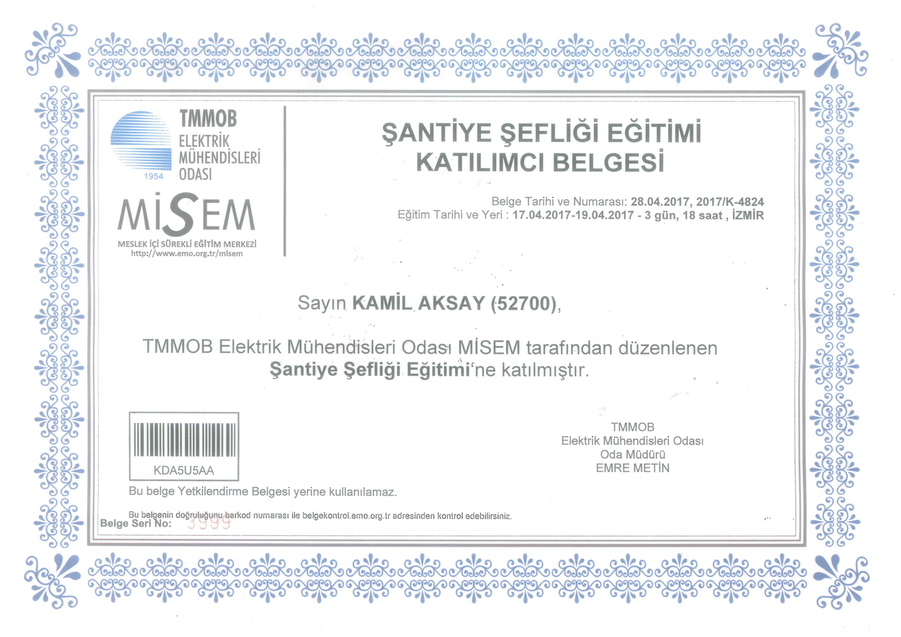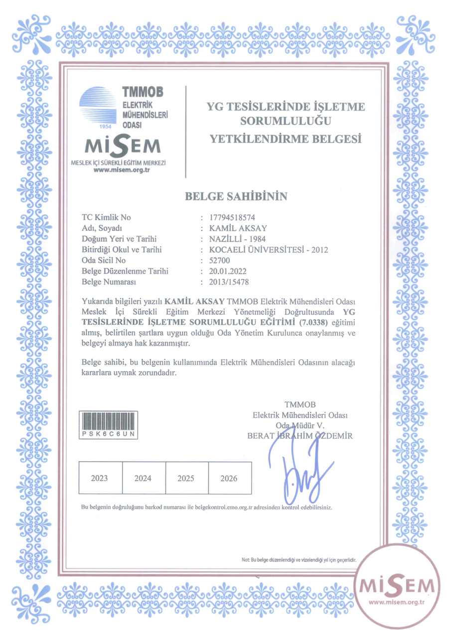 Sizlere daha iyi hizmet verebilmek için bilgimizi de belgemizi de güncel tutuyoruz.